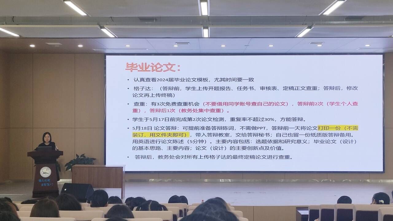 最后,许老师介绍毕业生离校工作安排,为安全有序离校做好充分准备。同时,许老师鼓励以积极的态度面对就业,树立“先就业、再择业”的心态。