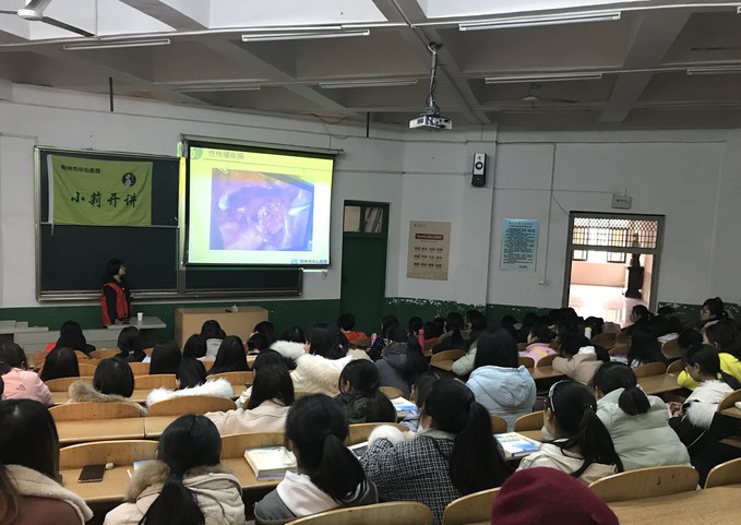 (通讯员黄茜)3月8日下午14点30分,外国语系在2教203教室举办“爱与安全一女老员工生理健康知识”讲座。讲座由荆州市中心医院妇产科主治医师沈晶主讲,外国语系大一女生现场聆听。