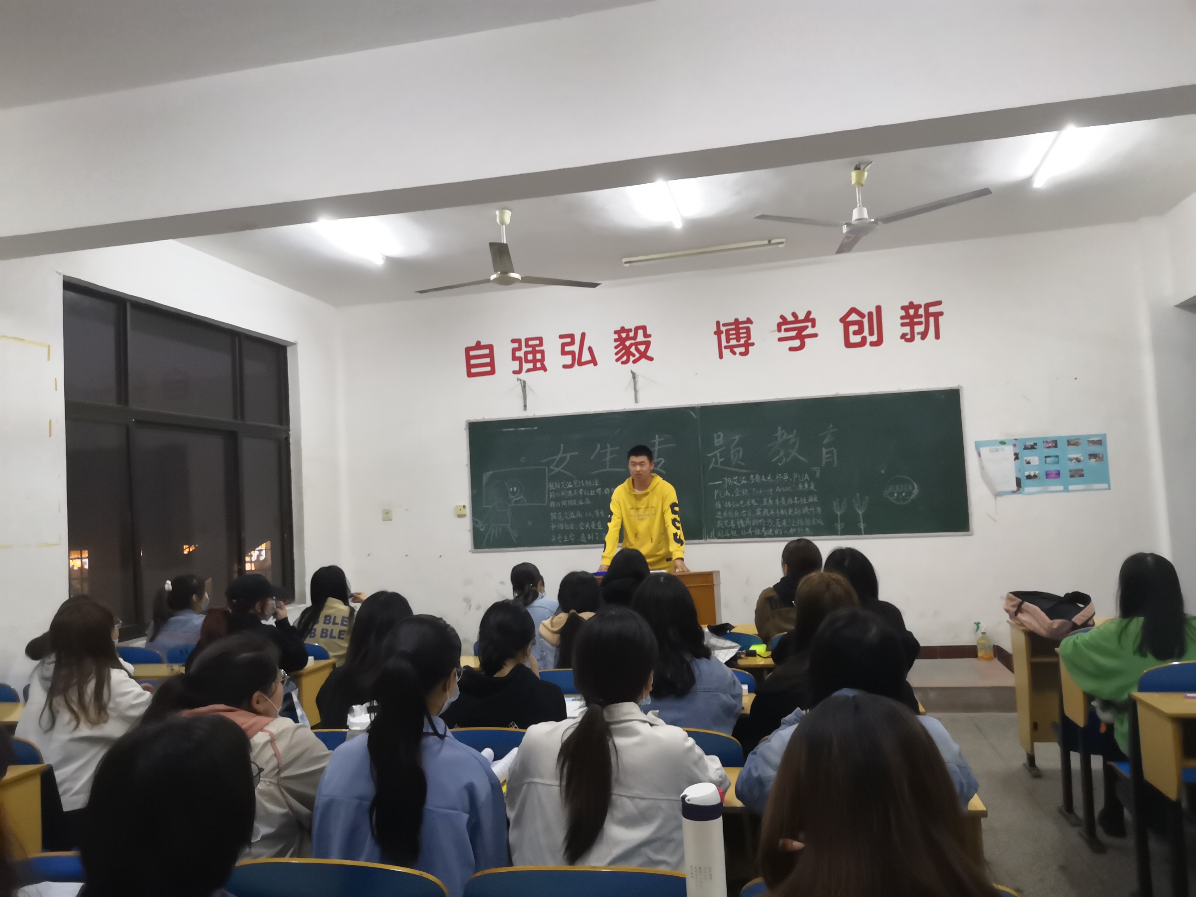 班委强调防多角关系、防意外怀孕、防艾滋病的必要性,女老员工容易遭受欺骗,经不起诱惑,理应对女生进行安全教育。班委还分析了女生青春期的生理与心理变化特点,并教育女生要正确看待和处理出现的变化,同时给出具体的建议和指导。采用大数据与案例分析,对女生进行了自尊自爱与加强自我保护意识的教育。