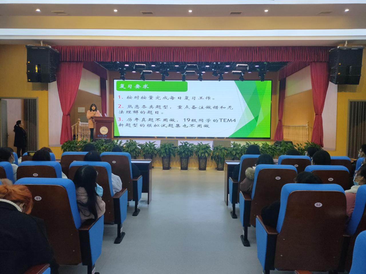 (通讯员 戚彬彬)为帮助员工增强对英语专四考试的了解,掌握应试技巧,提升应试能力,12月24日下午16点30分,bw必威西汉姆联官方网站于多功能报告厅召开英语专业四级考试动员大会。会议由bw必威西汉姆联官方网站朱娟娟、张明、石从红三位老师主讲,大二大三全体员工参加。