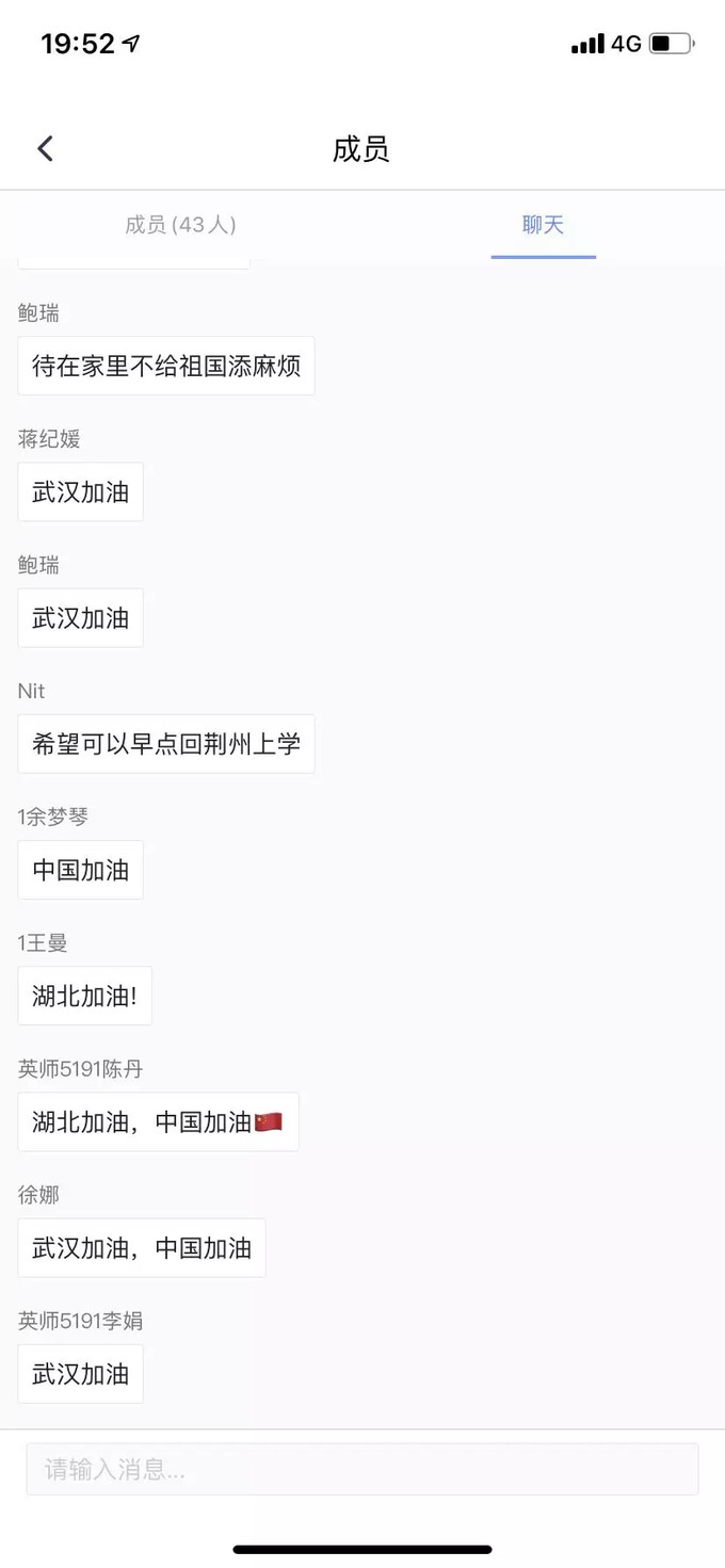 终于,班会迎来尾声。同学们纷纷在弹幕上刷起“武汉加油,中国加油!”“坚定信心,向阳而行,期盼春暖花开!”“一切都会好起来!”愿我们的城市早日车水马龙,春暖花开!