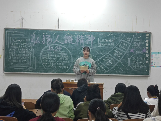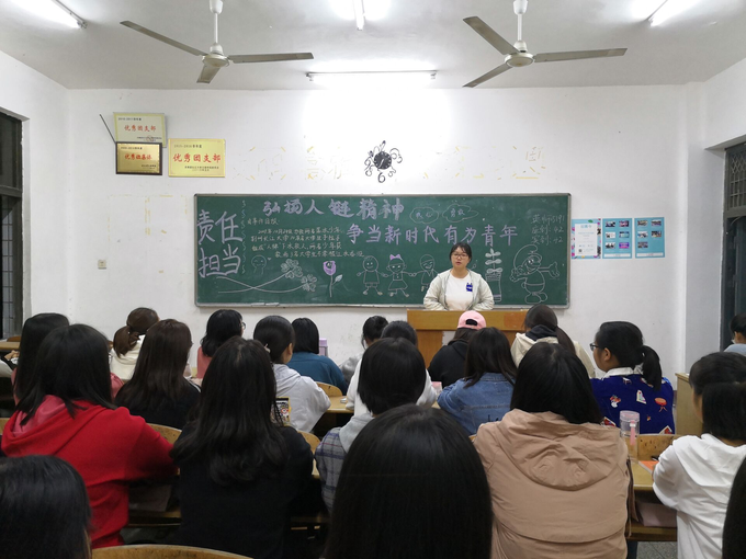 (通讯员王希千)为缅怀英雄、弘扬“10.24”英雄舍己救人的精神,2019 年10月24日晚七点,外国语系各班组织开展“弘扬人链精神、争当新时代有为青年”的主题团课活动。团课由各班团支书主持,全体团员参加。