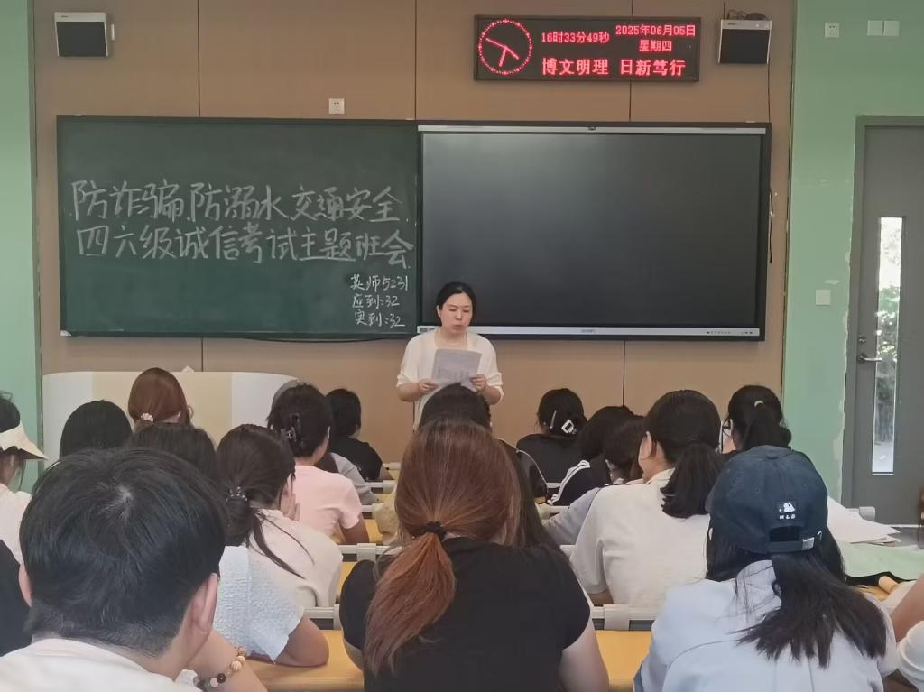 班会上,班主任围绕期末考试与四六级考试,系统解读《国家教育考试违规处理办法》等文件中关于作弊认定的具体标准,结合“因作弊受处分影响就业”的真实案例,以“诚信是立身之本”为核心,强调“考场纪律不容触碰,品格修养需终身践行”。现场组织员工逐字研读《考试诚信倡议书》,并以班级为单位完成全员签字承诺。