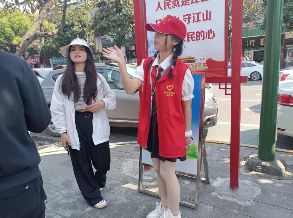 志愿者们积极投入到志愿服务中,认真倾听博物馆负责人讲解工作细节,积极为游客答疑解惑,帮助门卫管理入场秩序。志愿者们尽职尽责,即使在炎热天气下依然做好志愿服务工作。