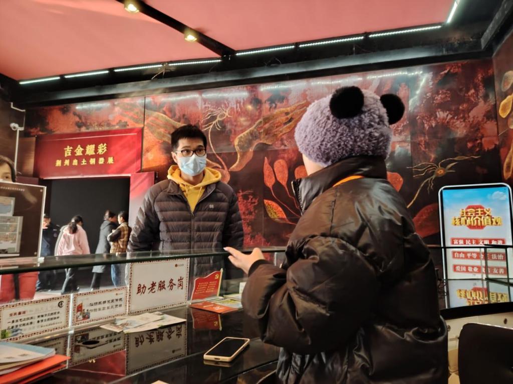 凛冬已至,志愿者们不畏寒冷,准时到达荆州博物馆开展志愿服务工作。在志愿服务活动中,志愿者们积极为游客提供帮助,耐心解答游客的疑问,使游客感受到了荆楚文化的魅力,更了解到了源远流长的历史。