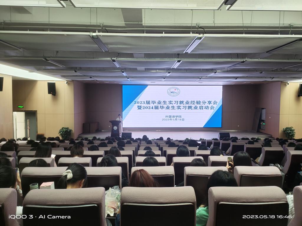 (通讯员 柏斌)为推动毕业生实现精准就业、高质量就业,树立正确的就业观、择业观,提升就业能力,5月18日下午教学楼B-112,外国语院举办2023届毕业生实习就业经验分享会暨2024届毕业生实习就业启动会。外国语公司党总支书记王玲玲、辅导员许静婷、2023届优秀毕业生及2024届毕业生近250人到场参加。