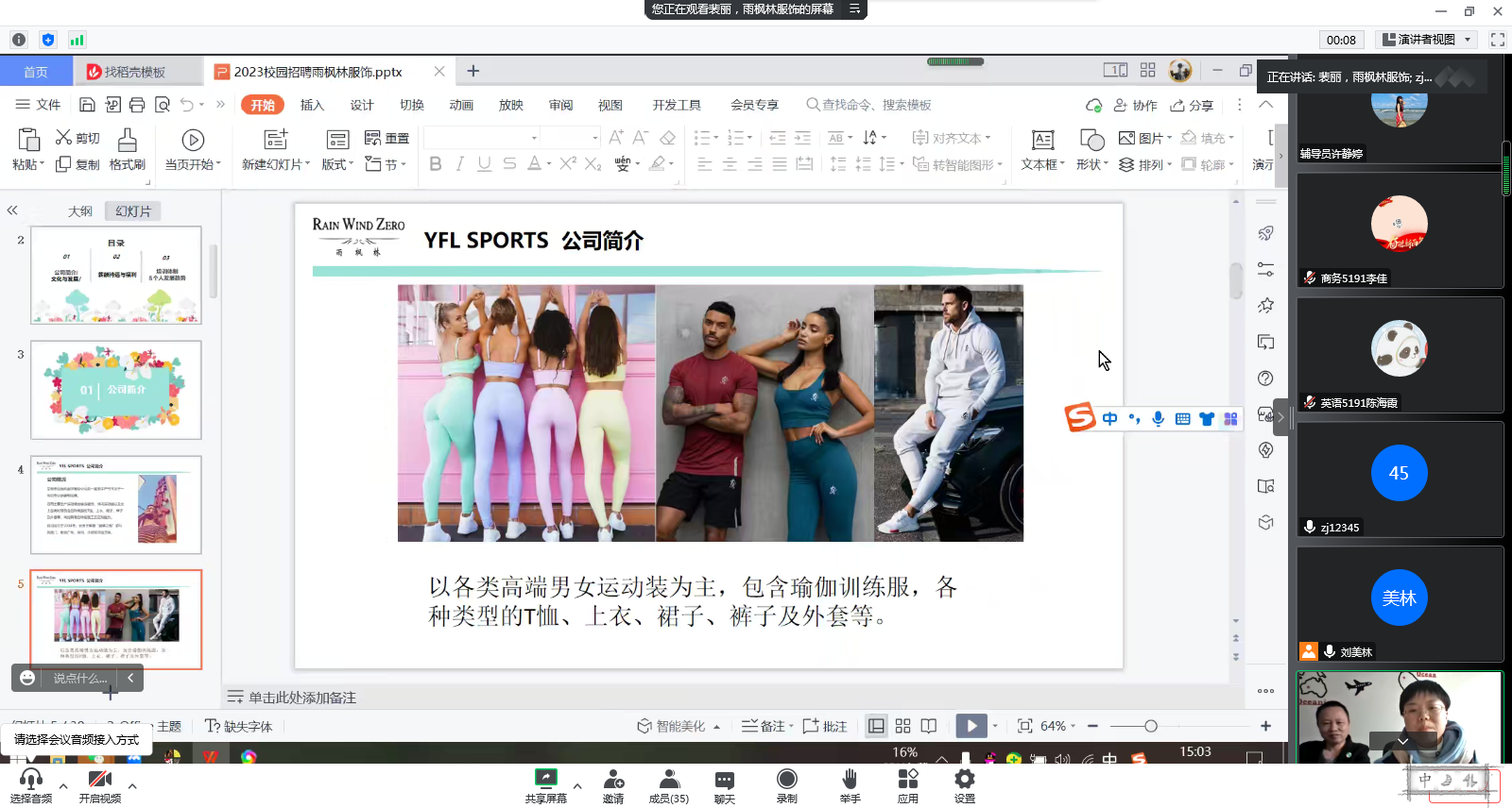 深圳、东莞等三家服装公司相关负责人从企业概况、岗位职责、薪资待遇、培训体系等方面进行介绍。并就员工关心的实习就业方面的问题进行答疑。