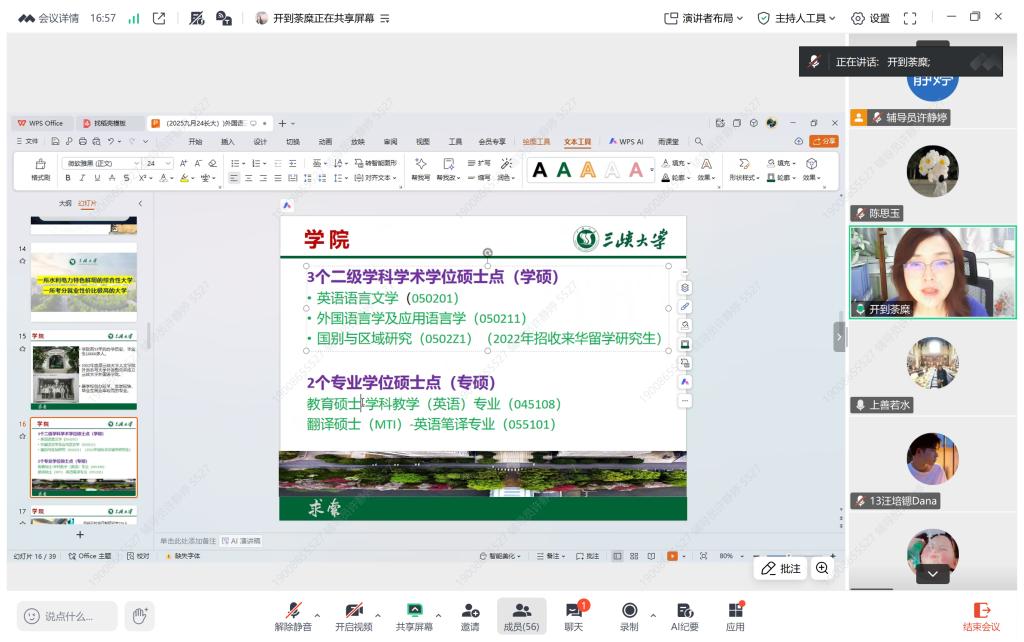 讲座伊始,屈琼教授首先介绍了三峡大学bw必威西汉姆联官方网站基本情况。随后,聚焦英语学科特点,分别对不同专业的招考形势、复习重点等作出细致解读。在备考建议环节,屈教授系统梳理了多个英语专业考研的科目复习方法,包括二外、专业课等的阶段性学习计划,并就考研复试策略进行详细讲解。