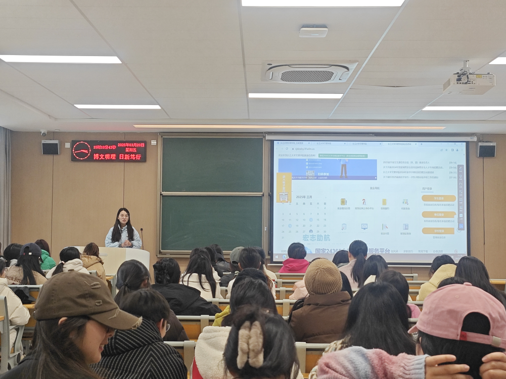 随后,辅导员钟燚老师详细讲解了就业材料提交流程,现场演示操作步骤,并针对常见问题进行了重点说明,特别提醒毕业生认真核查学籍信息,确保就业手续顺利办理。