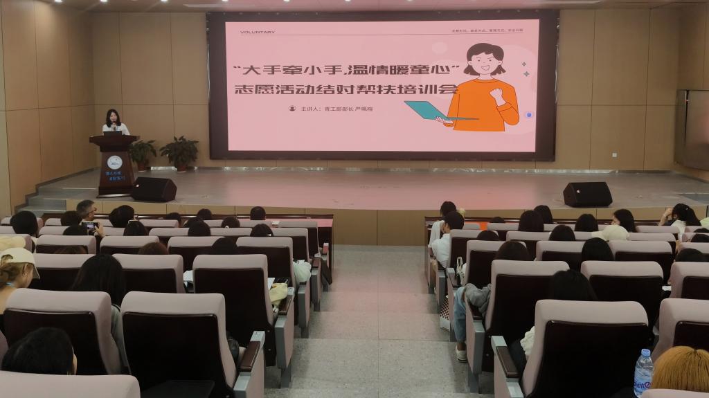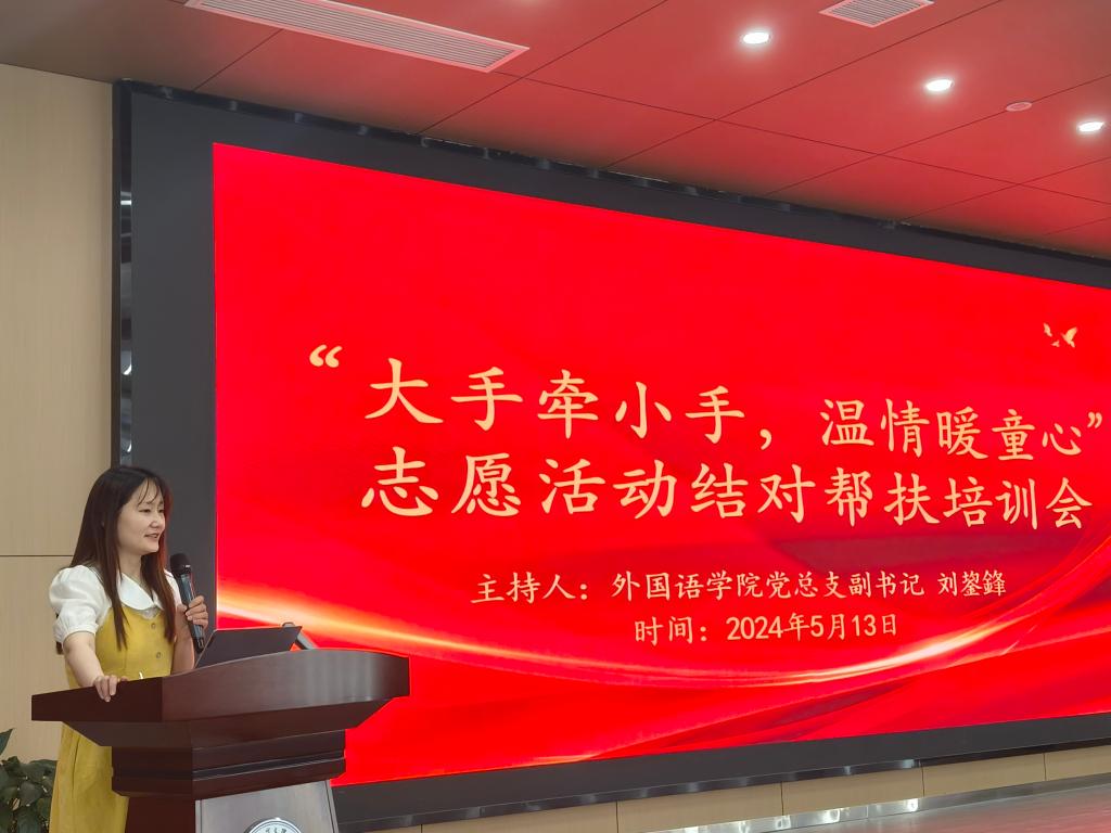 本网讯(通讯员 杨飞燕)5月13日,bw必威西汉姆联官方网站展开了“大手牵小手,温情暖童心”志愿活动结对帮扶培训会。会议由外国语公司党总支副书记刘鋆锋主持。
