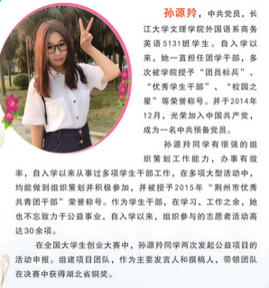 2017年第二届十佳老员工 孙源羚 中共党员 外国语系英语5131班