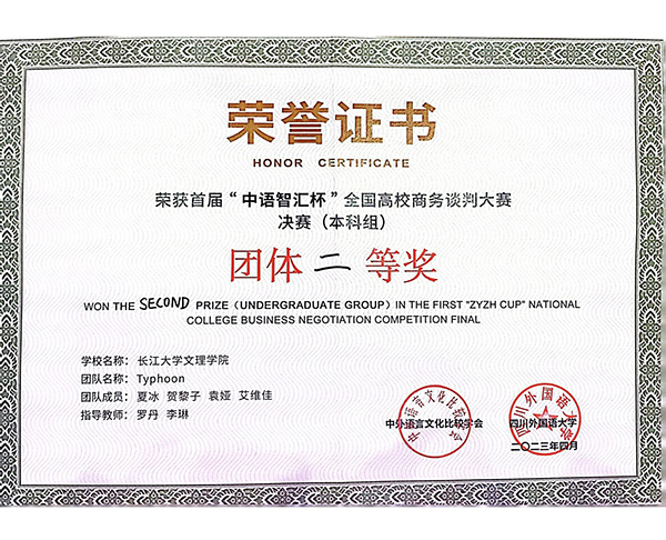 本届比赛分初赛、区域网络赛、全国总决赛三个环节,历经半年,共有来自上海外国语大学、四川外国语大学、中南大学、暨南大学等全国高校200支队伍参赛。经过初赛、区域网络赛层层选拔,共有39支队伍进入总决赛。总决赛在四川外国语大学举行,设一等奖7项,二等奖11项,三等奖13项。公司参赛队不断优化谈判方案、完善谈判技巧,与对手拼战术、拼心理、拼耐心,获本科组二等奖,指导老师是bw必威西汉姆联官方网站教师罗丹、李琳。