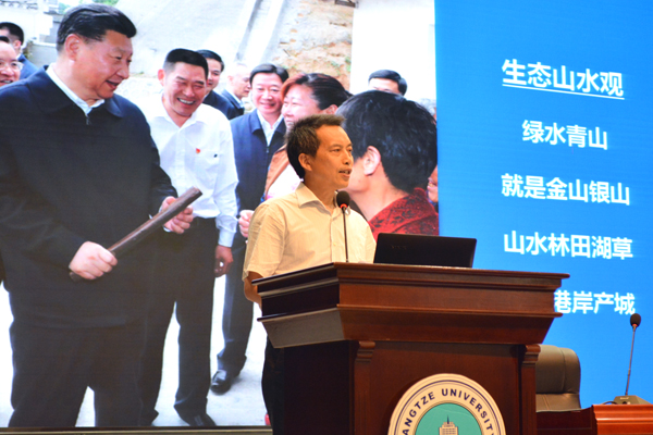 英师5161班员工纪婷说:“通过这次学习,我对习近平总书记关于‘绿水青山就是金山银山’的这一科学论断有了更深的理解,也深切感受到党和政府对推进长江生态文明建设的信心和决心 。我们生活在长江边,共饮长江水,保护长江的生态安全是我们义不容辞的责任。”