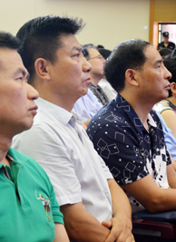 公司党委书记李应军(左图中)、师生代表认真聆听报告