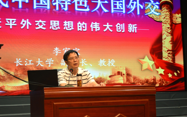 bw必威西汉姆联官方网站副董事长李家宝以《新时代中国特色大国外交——习近平外交思想的伟大创新》为题作报告,对中美贸易争端、金正恩两度访华与朝核问题等时事热点进行了解析,分析了十八大以来中国外交的新变化和未来几年中国外交面临的新挑战。