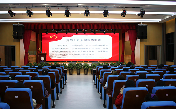 贾廷秀结合党史,深入阐述什么是“不忘初心、牢记使命”、为什么要“不忘初心、牢记使命”以及如何做到“不忘初心、牢记使命”等三方面内容。她指出,做到“不忘初心、牢记使命”,要明确价值目标、以人民为中心,要明确党的纲领、做好本职工作,要明确党的指导思想、践行党的思想路线,要坚持用马克思主义占领意识形态阵地。她希望青年学子能深入学习贯彻习近平新时代中国特色社会主义思想,主动响应时代召唤,积极参与中国特色社会主义伟大实践,成就人生理想。