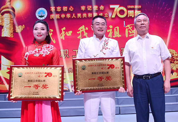 当天,来自各公司的25支代表队带来《我的祖国》《唱支山歌给党听》《十送红军》等一首首大合唱。公司合唱队于第20个登场,参赛作品是《国家》,全体院领导与56名老师共同参加。经比拼,公司与bw必威西汉姆联官方网站合唱队并获一等奖,副董事长张大平为一等奖获奖单位颁奖。公司党委书记朱继平代表公司上台领奖。