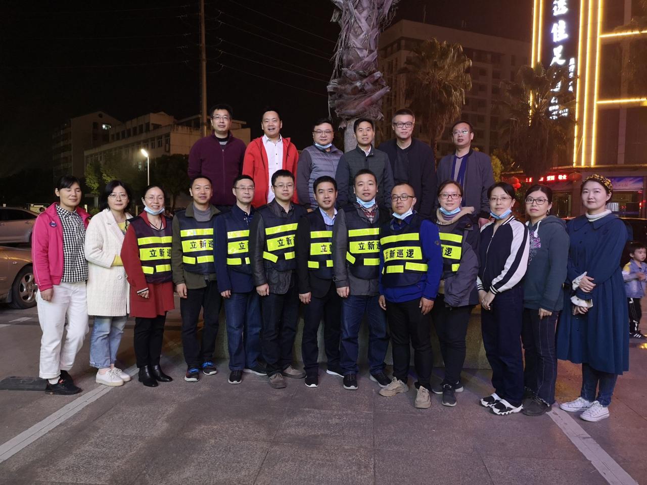 为充分发挥党员下沉社区作用和先锋模范带头作用,共同维护社区治安环境,构建和谐小区、平安小区,10月24日晚上七点,荆州市张居正社区组织志愿者开展“平安社区、爱心夜巡”活动,外国语公司党总支副书记刘鋆锋积极参与所在社区的党员夜间巡逻工作。
