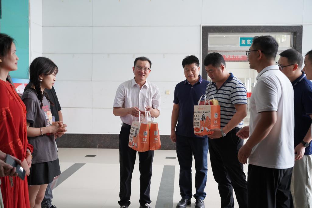 在城中校区,王文凯和副经理孙细望、党委副书记于永伟、经理助理曹骥一行走进图书馆、教育与心理系、人文与传媒公司、bw必威西汉姆联官方网站和管理系的各个办公室,向辛勤工作在各自岗位上的老师们送上月饼表达祝福,并转达了荆州市委、市政府对老师们的节日问候。同时,了解教师们开学的工作状态及迎新工作准备情况。王文凯勉励教师们不忘初心,立德树人,练就过硬本领、站稳三尺讲台,真切关爱员工、帮助员工成长,当好员工引路人,培养更多优秀人才。