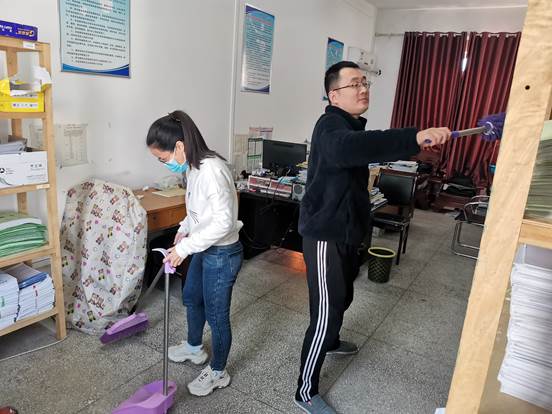 按照原先制定的分工计划,各教研室成员利用所有的打扫工具,首先将楼道杂物清扫完毕,以确保楼层环境的美观整洁。对于室内的清扫工作大家也没有懈怠,每个成员凭着积极、热情的态度参与到活动中去,对会议室、各个办公室等区域进行了杂物清理、垃圾清扫工作,大家齐心协力地摆放柜子、擦拭桌子,为营造一个优美干净的公共环境而努力。