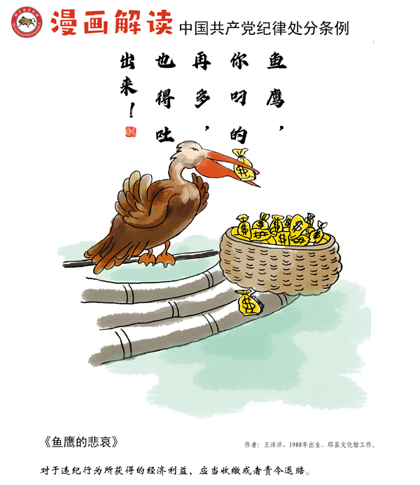 编者按:纪律是我们党的生命线,加强纪律建设是全面从严治党的治本之策。为深入贯彻落实十九届中央纪委四次全会关于加强党纪国法教育的部署要求,强化党规党纪的学习宣传、贯彻执行,使铁的纪律真正转化为党员干部的日常习惯和自觉遵循,中央纪委国家监委网站联合河北省纪委监委,以漫画形式对《中国共产党纪律处分条例》进行解读,陆续连载刊发,敬请关注。