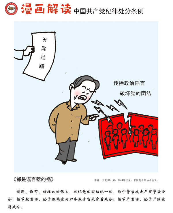 编者按:纪律是我们党的生命线,加强纪律建设是全面从严治党的治本之策。为深入贯彻落实十九届中央纪委四次全会关于加强党纪国法教育的部署要求,强化党规党纪的学习宣传、贯彻执行,使铁的纪律真正转化为党员干部的日常习惯和自觉遵循,中央纪委国家监委网站联合河北省纪委监委,以漫画形式对《中国共产党纪律处分条例》进行解读,陆续连载刊发,敬请关注。