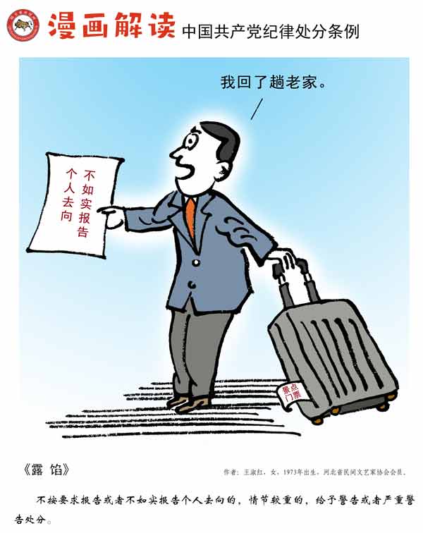 编者按:纪律是我们党的生命线,加强纪律建设是全面从严治党的治本之策。为深入贯彻落实十九届中央纪委四次全会关于加强党纪国法教育的部署要求,强化党规党纪的学习宣传、贯彻执行,使铁的纪律真正转化为党员干部的日常习惯和自觉遵循,中央纪委国家监委网站联合河北省纪委监委,以漫画形式对《中国共产党纪律处分条例》进行解读,陆续连载刊发,敬请关注。