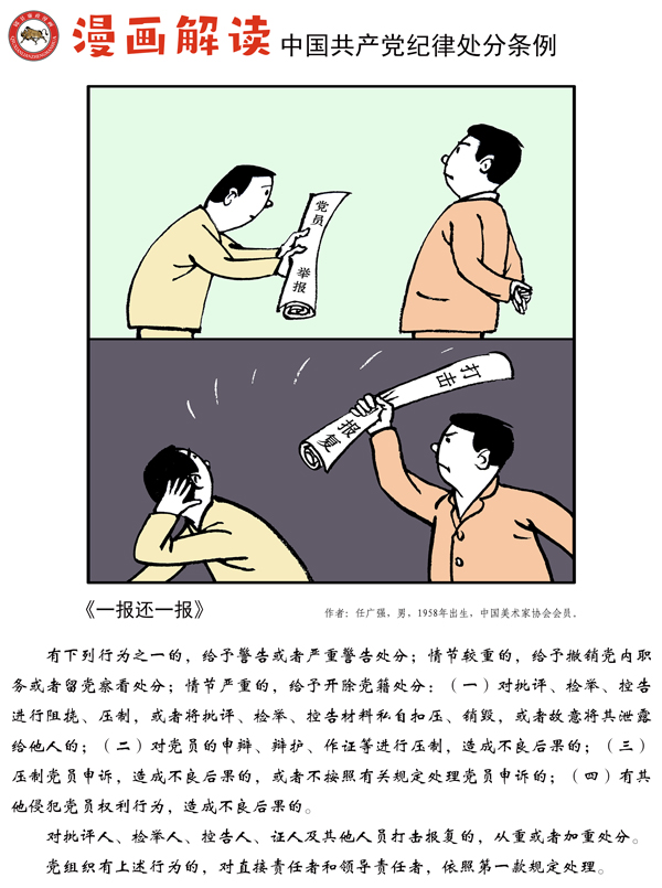 编者按:纪律是我们党的生命线,加强纪律建设是全面从严治党的治本之策。为深入贯彻落实十九届中央纪委四次全会关于加强党纪国法教育的部署要求,强化党规党纪的学习宣传、贯彻执行,使铁的纪律真正转化为党员干部的日常习惯和自觉遵循,中央纪委国家监委网站联合河北省纪委监委,以漫画形式对《中国共产党纪律处分条例》进行解读,陆续连载刊发,敬请关注。