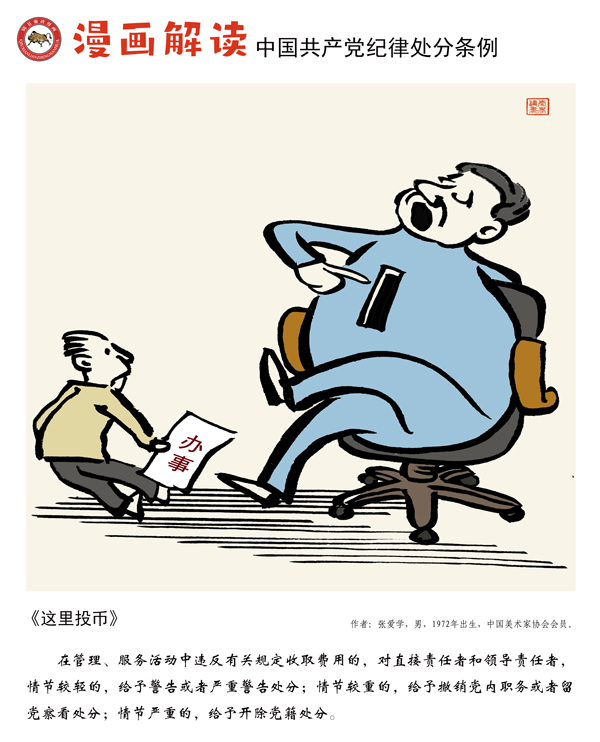 编者按:纪律是我们党的生命线,加强纪律建设是全面从严治党的治本之策。为深入贯彻落实十九届中央纪委四次全会关于加强党纪国法教育的部署要求,强化党规党纪的学习宣传、贯彻执行,使铁的纪律真正转化为党员干部的日常习惯和自觉遵循,中央纪委国家监委网站联合河北省纪委监委,以漫画形式对《中国共产党纪律处分条例》进行解读,陆续连载刊发,敬请关注。