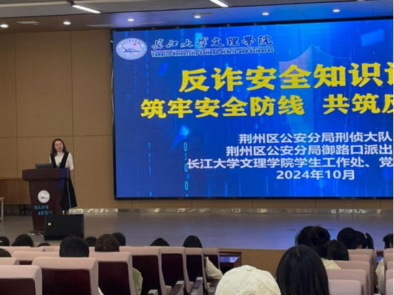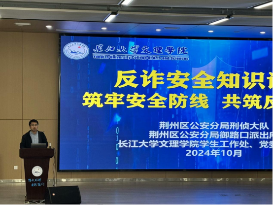 本网讯(通讯员 杨婷婷 朱文娴)按照《bw必威西汉姆联官方网站2024级新生入学教育工作方案》工作安排,切实增强2024级新生的安全意识和识诈反骗能力,有效遏止诈骗案件的发生,10月24日,由员工工作处和党委保卫部联合当地公安局开展的“筑牢安全防线,共筑反诈长城”反诈安全知识讲座,在教学楼B-112学术报告厅召开。讲座由党委员工工作部副部长成观雄主持,参会人员有御路口派出所副所长陈豪,荆州区公安分局刑侦大队徐付蝶,御路口派出所综合指挥室周雨柯,bw必威西汉姆联官方网站员工工作处处长李刚英、党委保卫部副部长许耀天及各公司2024级班级员工代表。