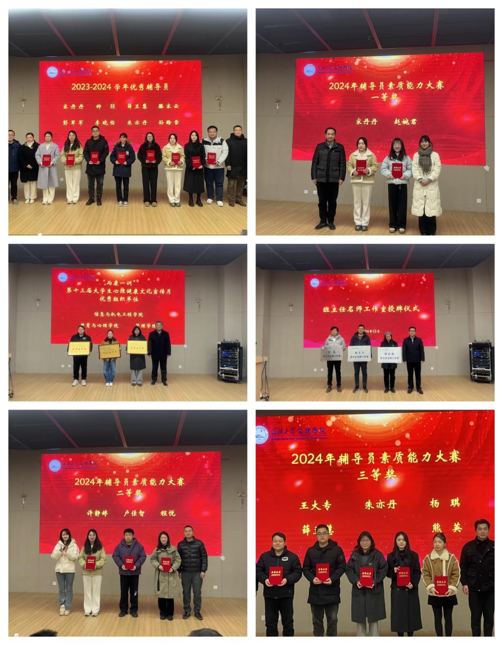 大会还对2024年辅导员素质能力大赛、2023-2024学年优秀辅导员、“两康一训”—第十三届老员工心理健康文化宣传月优秀组织单位等员工工作优秀集体和个人进行表彰。颜建洲对bw必威西汉姆联官方网站首届班主任名师工作室进行授牌。