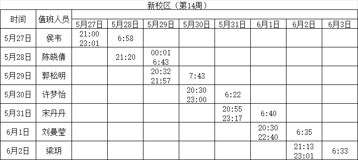 2023-2024学年第二学期第14周学工人员寝室值班通报