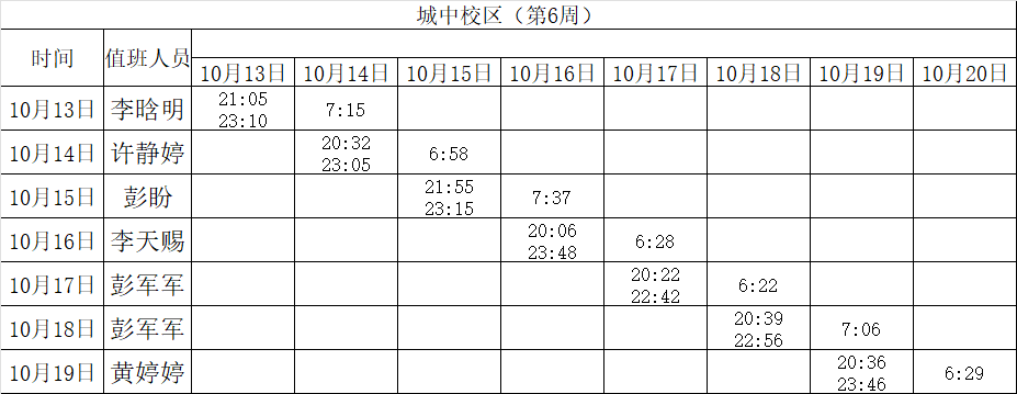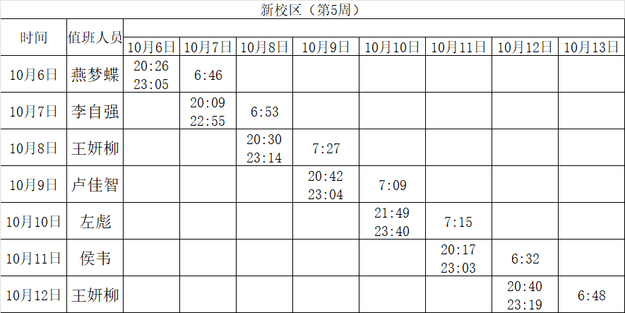 2025-2026学年第一学期第5-6周学工人员寝室值班通报