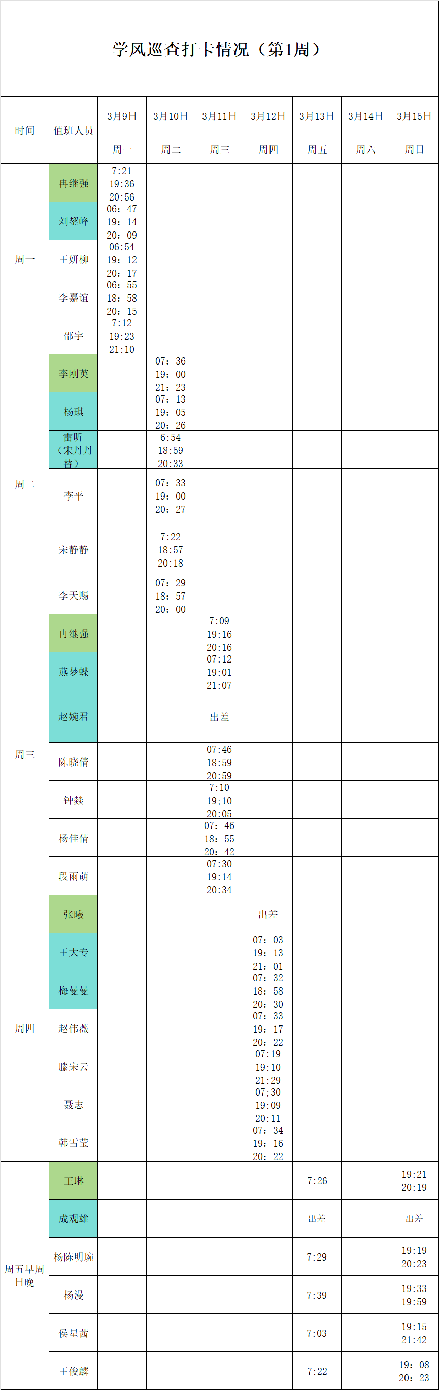 2025-2026学年第二学期第1-2周学风巡查打卡情况公示