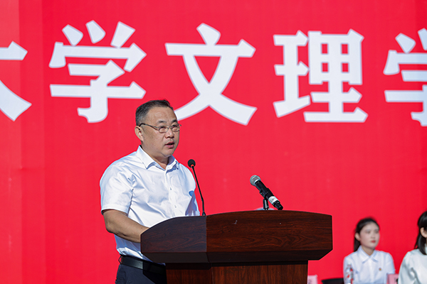 经理李兴祥以《梦想在追逐中绽放光彩》为题讲授开学“第一课”。他代表全校师生员工对新同学的到来表示欢迎,并结合自己的所思所想、所见所闻,与即将开启文理新旅程的同学们畅谈心里话。
