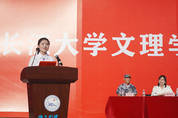 信息与机电工程公司物理学专业周烁迎同学代表全体在校生发言。她说,每份荣耀和精彩背后都有坚持和付出,每一次挑战都是历练和成长,要在青春赛道上不懈拼搏,收获真知,创造辉煌。