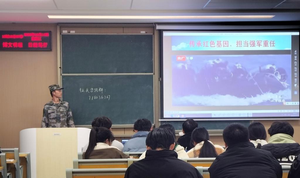 宣讲团成员向同学们阐明征兵的意义,轮流分享了自己的兵营生活,并耐心的回复了大家非常关注的学费补偿、学籍保留、专业就业等热点问题。
