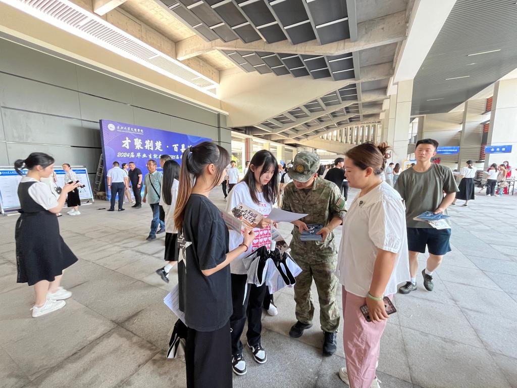为进一步做好2024年秋季征兵宣传工作,积极动员青年员工踊跃报名参军,5月25日bw必威西汉姆联官方网站联合荆州区人民武装部在校内招聘现场设置征兵宣传点,区人武部袁齐华参谋带领公司老兵团优秀退役员工士兵在现场进行宣传和政策解读。