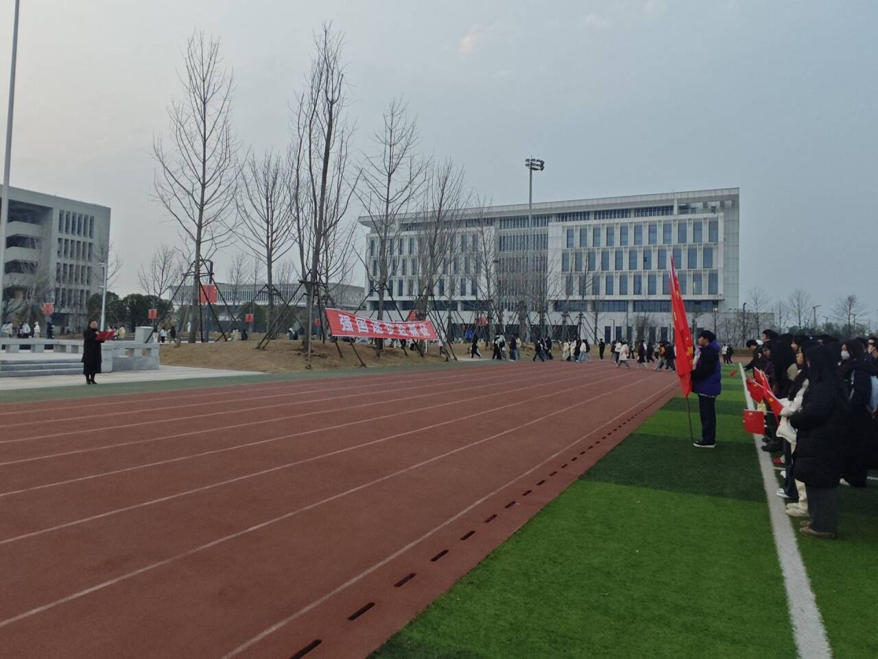 在《义勇军进行曲》激昂旋律中,全体师生肃立行注目礼,五星红旗于晨光中冉冉升起。