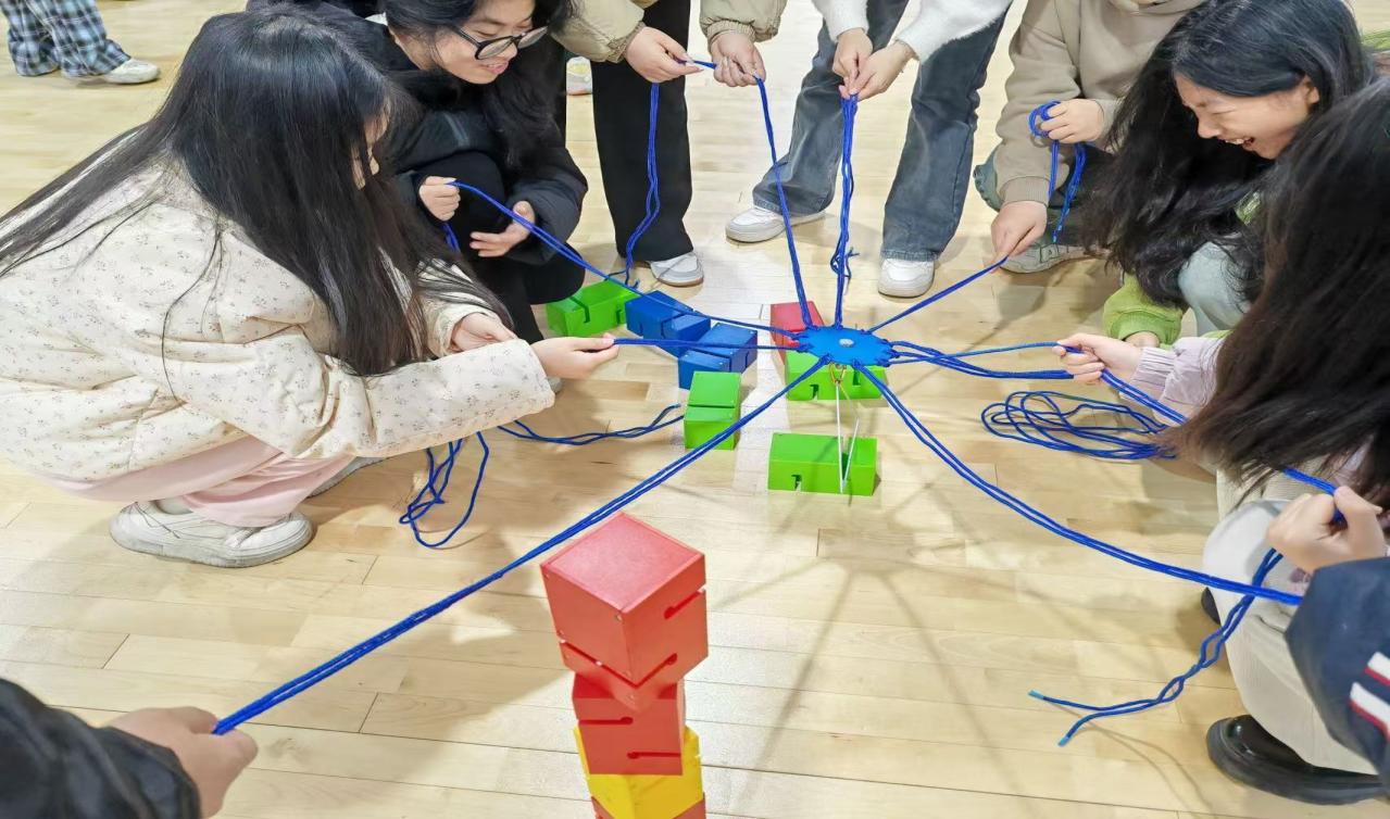 活动二,齐心协力搭积木,十个人一组,利用特殊道具,将六个积木依次叠放。此次活动旨在增强团队成员间的协作与沟通能力,培养共同目标感,提升问题解决的能力及应变技巧,增强团队凝聚力,激发成员创造力与潜能,使团队之间的配合更为默契。
