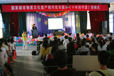 本网讯(员工记者 严帅)6月10日,在第五个中国文化遗产日来临之际,由公司学子自制的国家级非物质文化遗产荆河戏的宣传专题片《十年的守望》首映式在公司大礼堂成功上演。