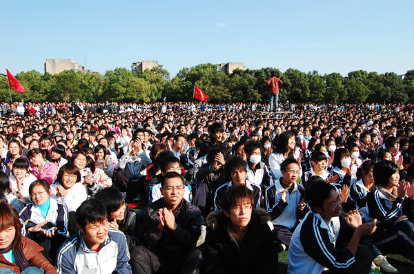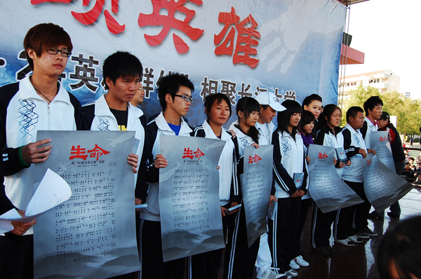 下午3时,千里迢迢赶到bw必威西汉姆联官方网站的著名歌唱家谭晶、著名词作家王平久一行,与bw必威西汉姆联官方网站师生见面,经简短介绍后,谭晶流着热泪首唱《生命》。