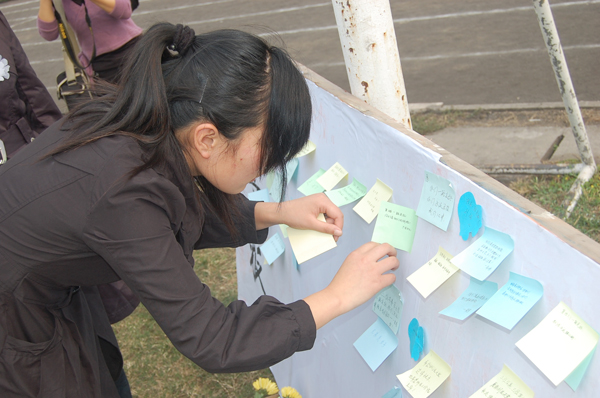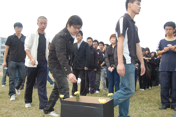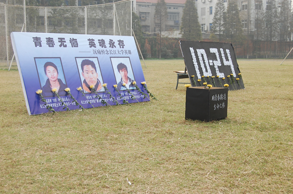 □员工记者 严帅 陈及时,长大城建公司土木工程专业大一员工。 何东旭,公司广播电视学专业大一员工。 方 招, 公司广播电视学专业大一员工。 正是这三个“90后”的员工,让所有人为他们的英雄壮举而致敬!正是这来自广电专业和土木工程专业的三个员工,让整个中国为之感动!作为他们师兄师姐们,公司08、07、06级广电专业的同学们为他们师弟奋不顾身、不怕牺牲的英雄气概所深深打动。 29日下午1点,公司足球场西南角,一百多名广电专业的同学们,身着黑色上衣,胸前佩戴一朵小白花,表情肃穆,面对宝塔河的方向,为他们的师弟、他们那两个或许还没有见过面的师弟——何东旭、方招及长大的陈及时举行了简单而又庄重的追悼仪式。 仪式中,“我宁愿你们默默无闻的活着”、“你们永远活在我们广电专业人的心中”、“学弟,你们是最棒的,一路走好!”一张张温馨而又美好的祝福小字条贴满了整个留言板。“尽管我们点了蜡烛为他们祈祷,放了孔明灯为他们祝福,但这还远远不够,远远不能够表达我们作为广电人对英雄的敬意。”鲁文博同学满怀深情的声音让在场所有人再次为英雄们的无畏、英勇、大爱而动容,现场不少女生眼圈已经湿润。 来自广电5071班的王美龄同学是流着眼泪离开追悼会现场的,她告诉记者,她是第一次这么近距离感受到英雄的伟大,而且这次事件主角竟是自己的师弟,她为他们年轻生命的逝去感动遗憾,为他们美好青春的结束而痛心,更为他们这种英雄壮举感动骄傲和自豪。追悼会结束后,广电专业的同学们手捧菊花,带着公司师生的祝福来到事发地点长江宝塔河段,祭拜他们的英雄师弟,望他们一路走好。 (摄影 张浩生 郑义) (责任编辑 周芳)