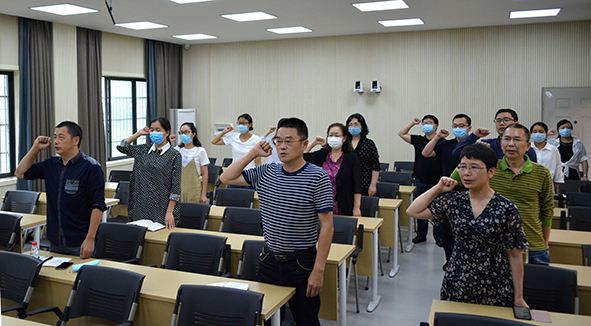 活动现场,在朱继平领誓下,机关三支部全体党员同志举起右拳,面对党旗,庄严宣誓。