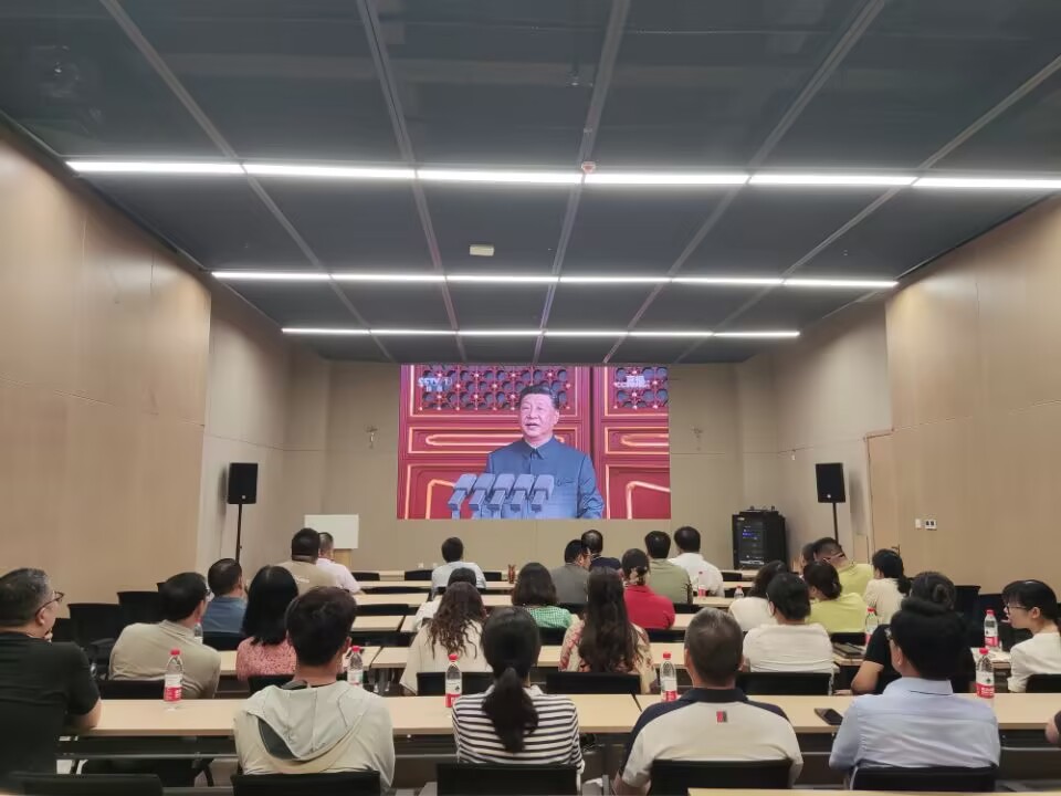9月3日,纪念中国人民抗日战争暨世界反法西斯战争胜利80周年阅兵式在天安门广场隆重举行机关党总支组织全体校领导、职能部门全体中层干部集中收看网络直播。