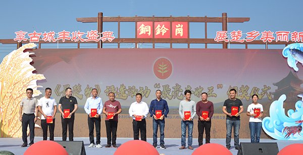本网讯(记者 刘磊)今天(9月23日)上午,党委书记朱继平赴八岭山镇铜岭村蔬菜主题公园出席荆州区第二届农民丰收节庆祝大会,并为“最亮丰收王”获奖代表颁奖。