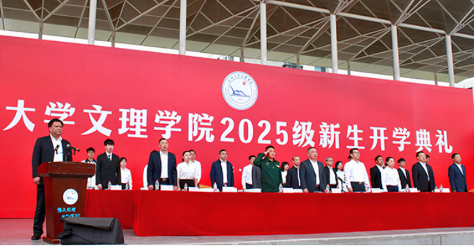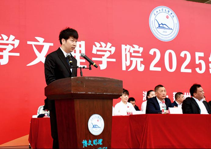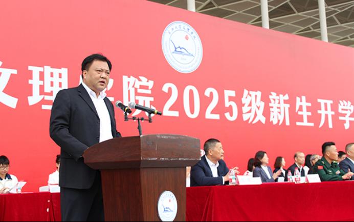“二十一年来,公司始终坚守‘为党育人、为国育才’的初心使命,秉持‘应用型、区域性、国际化’的发展路径,为社会培养了三万余名高素质应用型人才。近年来,公司更全面推进‘两康一训’育人模式,聚焦身心健康与就业能力,构建‘五育并举’新格局。”李兴祥经理指出,站在大学起点,立于时代潮头,同学们生逢其时,使命在肩,并倾心分享三点期望与大家共勉:一是以家国情怀铸魂,做有使命感的文理人,让个人理想与国家发展同频共振,铭记历史,继往开来,以文理人特有的精神气质投身强国建设。二是以身心健康筑基,做充满活力的文理人,以健康的体魄和阳光的心态,面对学习和生活,行走未来,搏击风浪。三是以责任担当砺行,做有行动力的文理人,以学习为本、夯实专业根基,以挑战为机、竞逐创新舞台,以实践为路、深入社会课堂。
