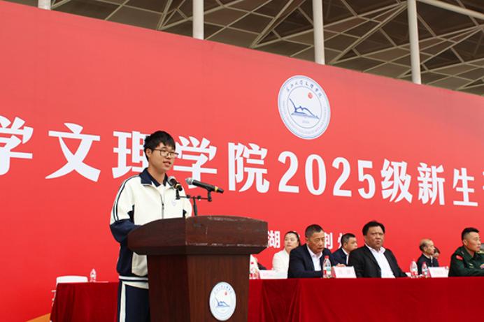 数学与医护系钟鸿燊同学代表全体新生发言,承诺将永葆求知热情,主动探寻知识的边界;勇于实践创新,在科创竞赛、志愿服务、文体活动中锻炼自我;胸怀家国天下,以数学之理性结合人文之温度,回应时代召唤。