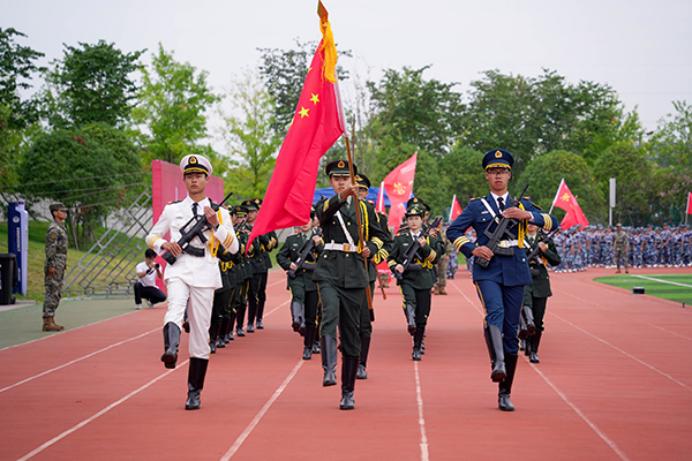 党委副书记李则俊主持军训汇报展演。