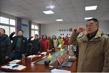 2023年2月22日,机关一支部在行政楼会议室开展2月政治理论学习和主题党日活动,学习相关内容。党委书记朱继平、经理助理曹骥以普通党员身份参加活动,党委书记朱继平领誓入党誓词。
